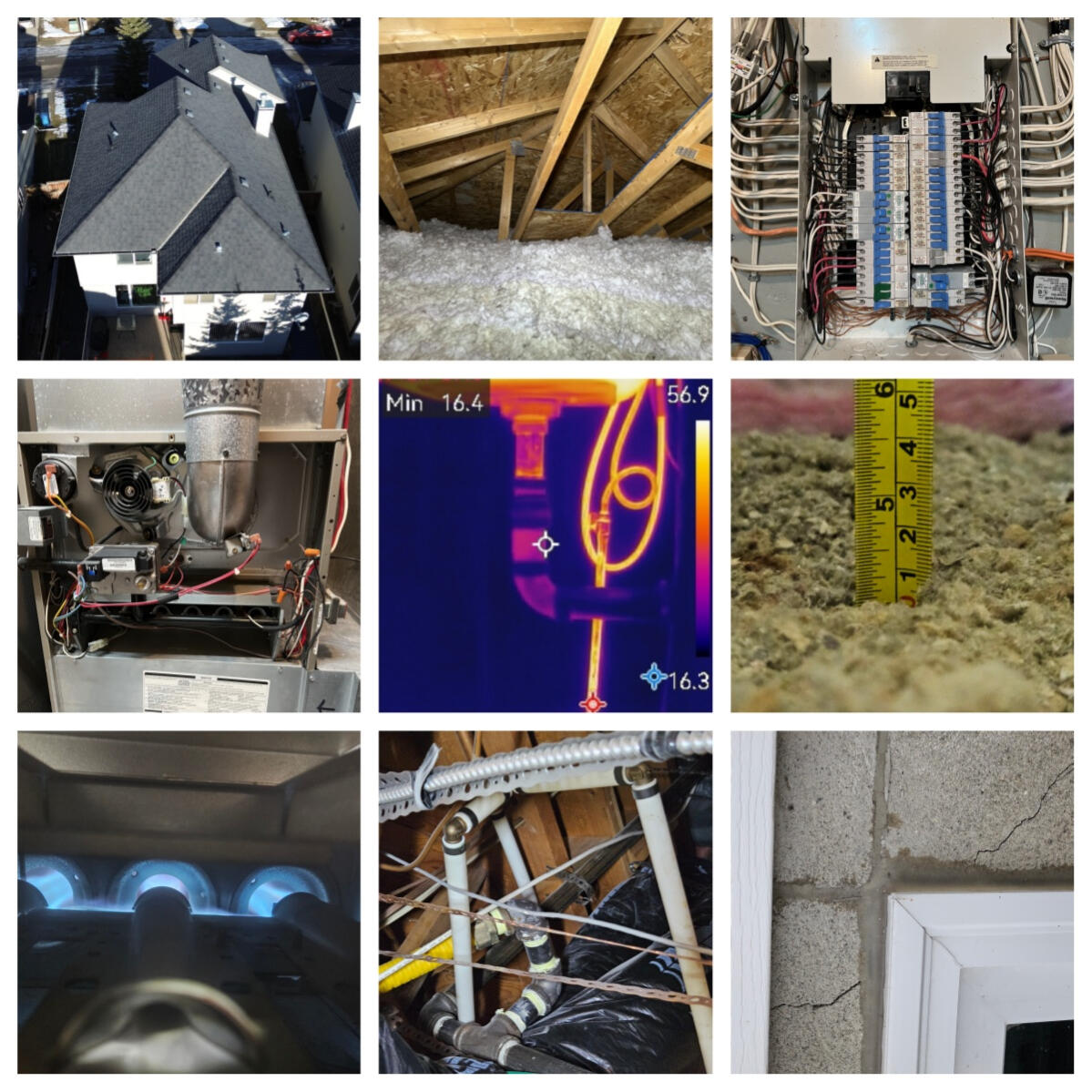 We inspect Structure, Roof, Exterior, Electrical, Plumbing, Heating & Cooling, and Interior.